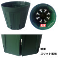 スリット鉢は、大地での根張りを鉢の中でも実現するためにデザイン設計された理想的な植木鉢です。根のサークリング現象を防止するので、用土の90%以上を有効利用することができ、植物の生育に大きな効果 をもたらします。果樹・野菜・観賞用などあらゆる園芸に最適です。